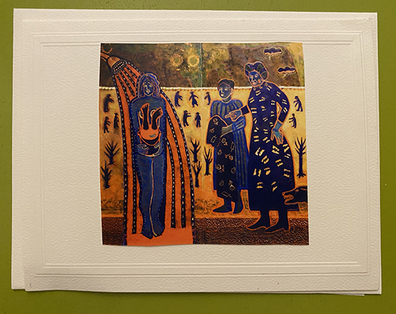 This painting depicts the Night of Terror, November 14, 1917. On that evening, Suffragists arrested for picketing in front of the White House were sent to the Occoquan Workhouse where they were subject to a number of abuses including beatings, stress positions, and forced feedings. The painting shows the women being forced to strip and shower. A prison matron, depicted as a zombie, watches while a black prisoner is forced to hold the clothes of the Suffragist. (Black prisoners were forced to either wait on the white women or beat them, depending on the whim of the guards.) The bucket of feet held by the Suffragist represents one of the hazards of imprisonment. All of the prisoners had to share a single bar of soap even though one had open syphilis sores on her legs.